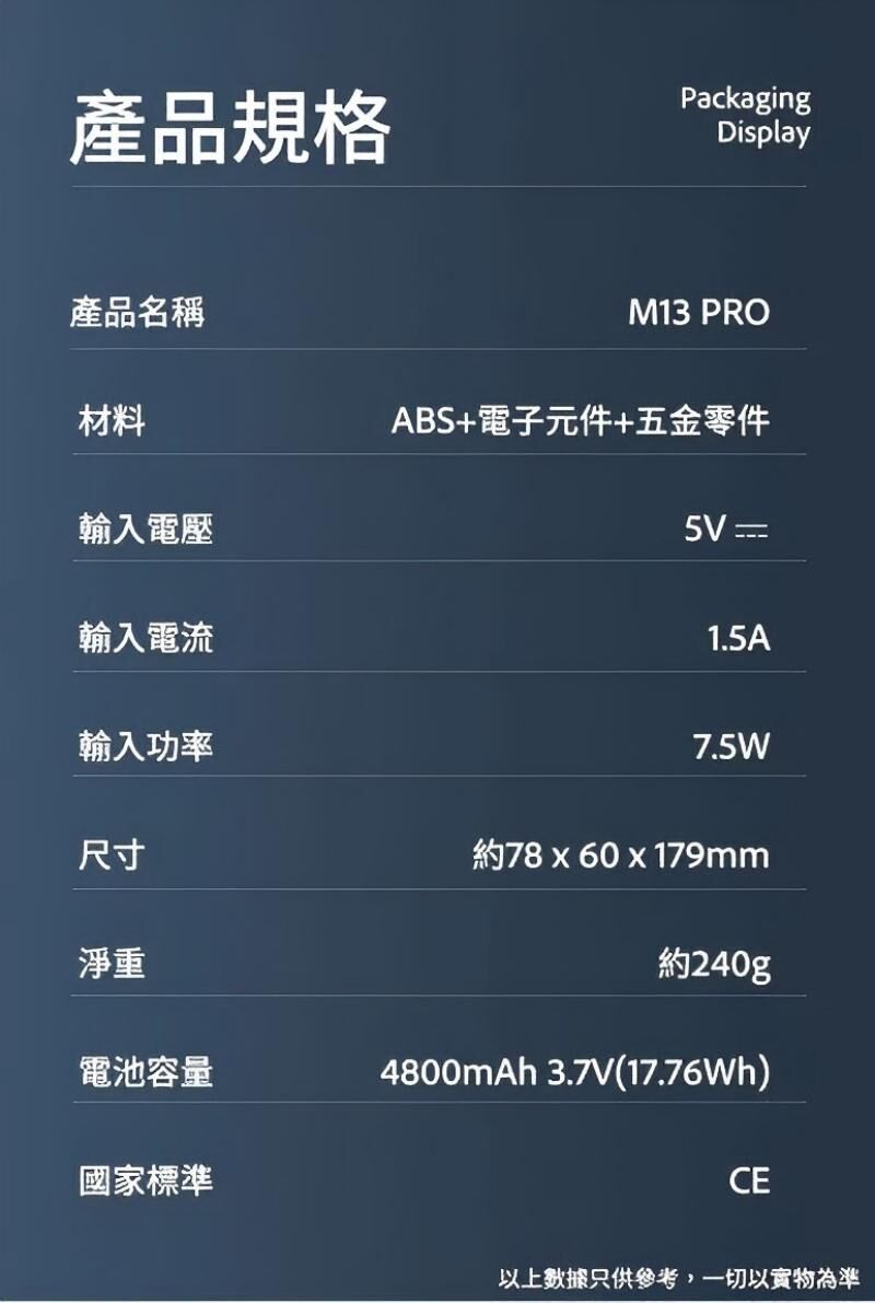 使用時間只供參考,產品使用時間會因應環境及電池耗損而有所改變,最長風力是以 1 段風及充滿電計算,一切以實物為準。
