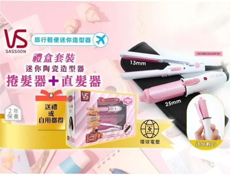Vidal Sassoon 沙宣 環球電壓25mm陶瓷捲髮器 + 13mm陶瓷纖巧直髮器禮盒套裝