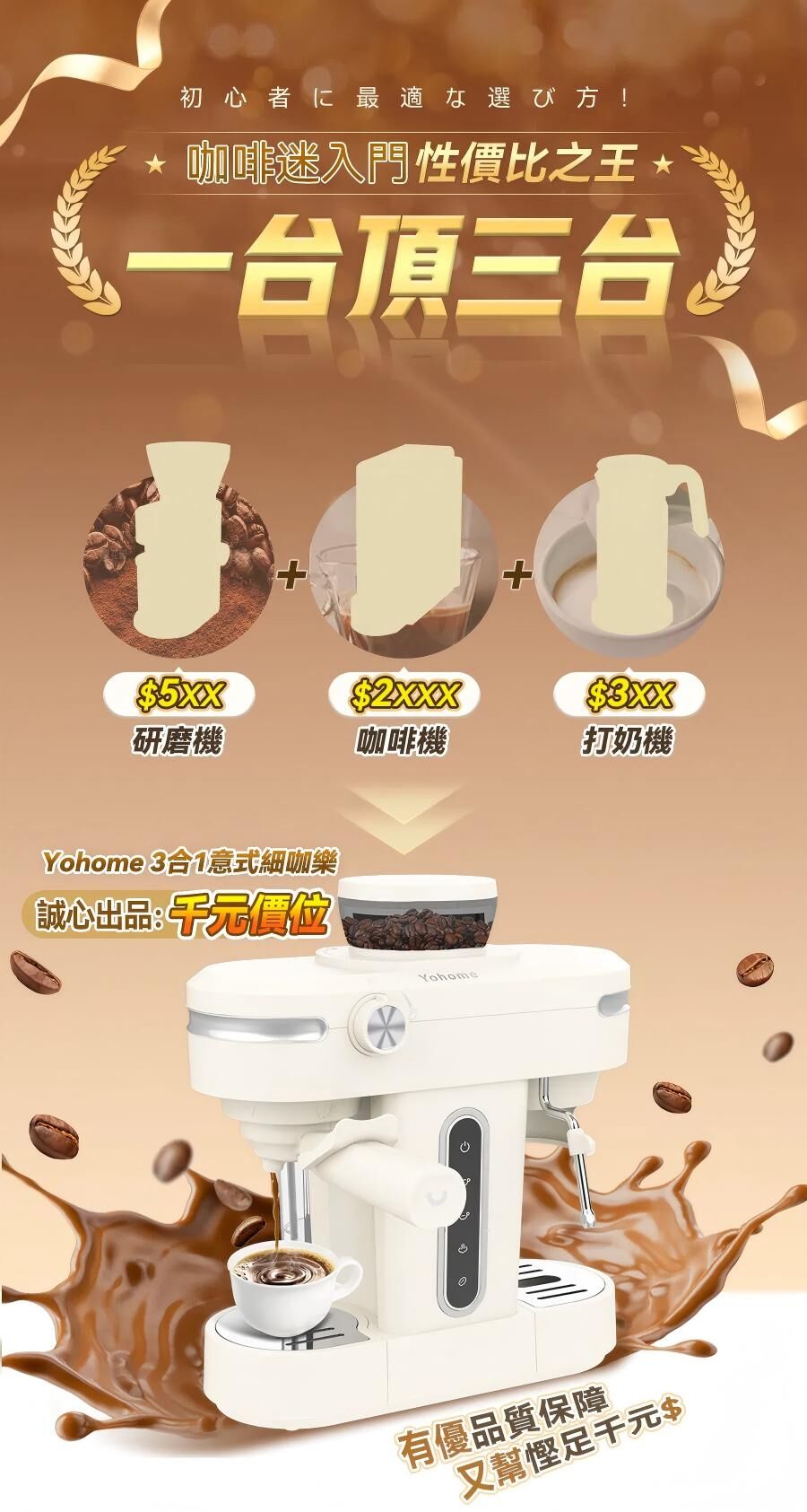 千元家用咖啡機黑馬攻入💥💥!#Yohome 今次有新料到‼️
