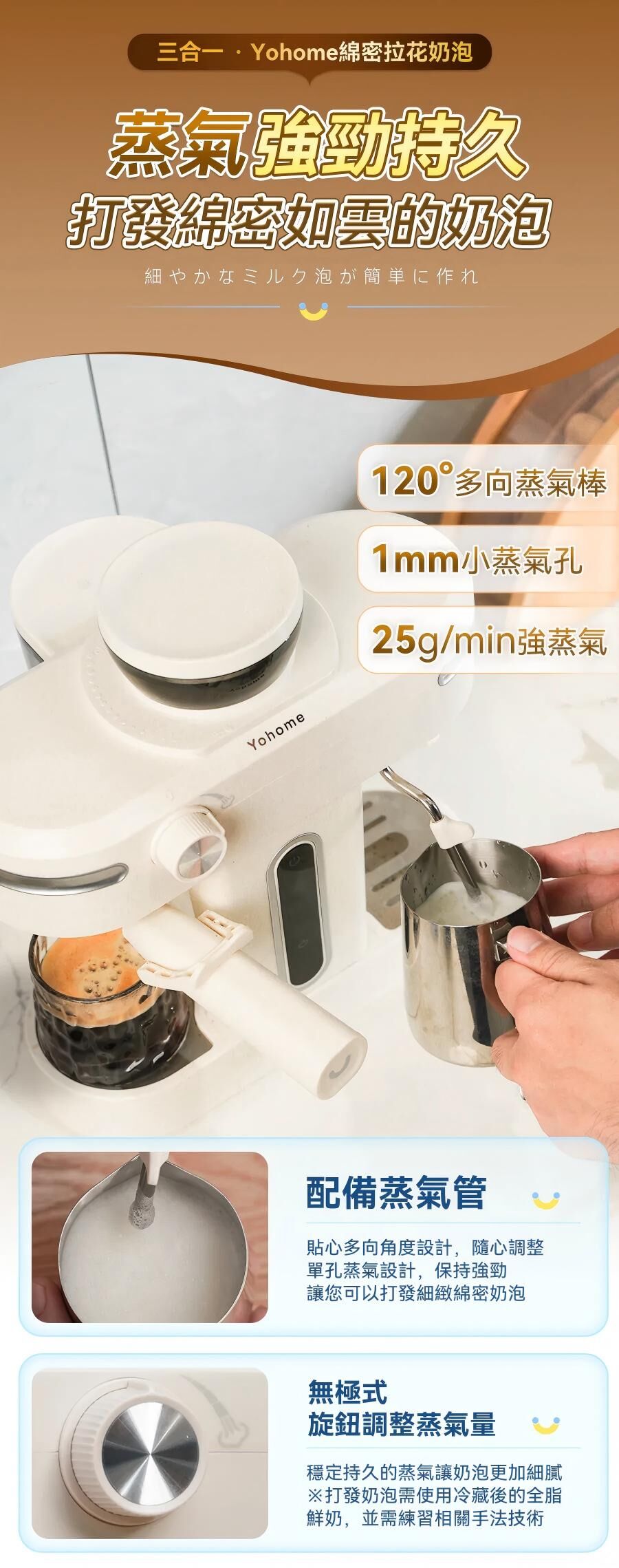 小而強大的半自動意式咖啡機 #Yohome 迷你專業級現磨鮮萃奶泡3合1半自動家庭意式咖啡機