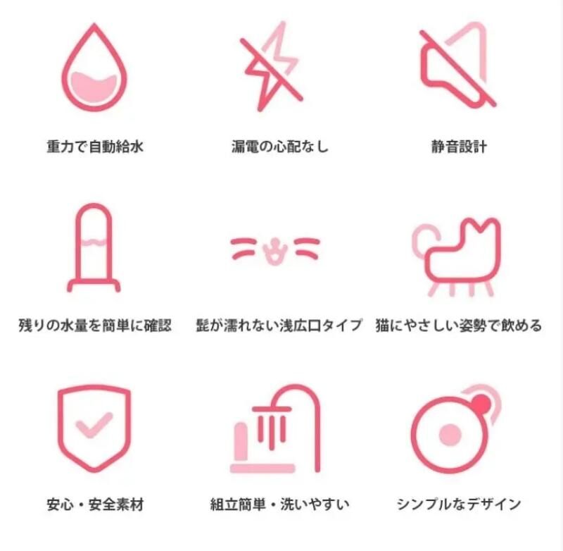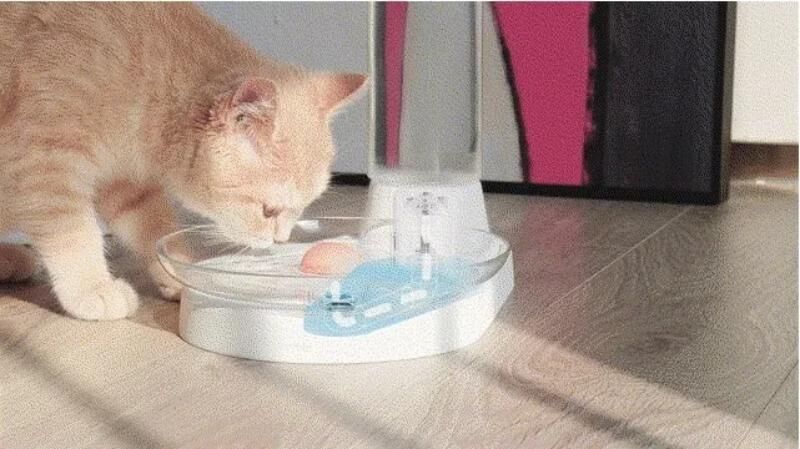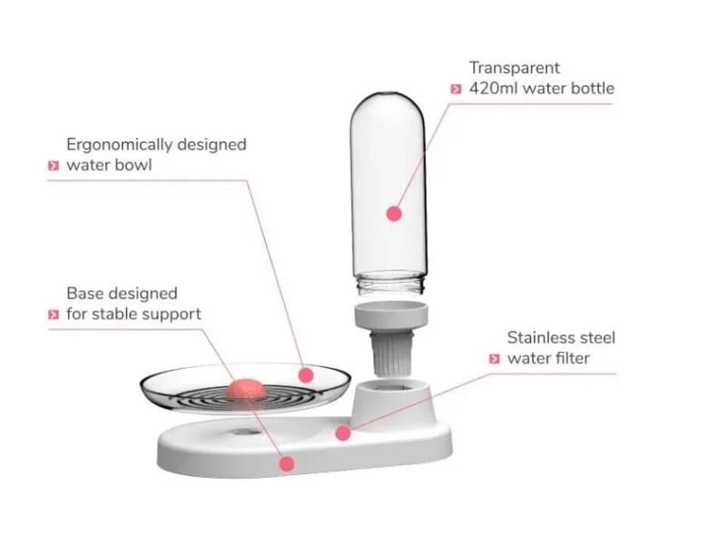 模擬自然湧泉,吸引寵物提升飲水量,適合貓狗.  靜音流水設計可保持水質潔淨.淺的飲水盆設計,避免整濕貓狗鬚,飲水盆到一定水位時,自動由水樽添加