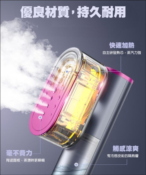 30秒快速加熱,配合水蒸氣噴霧。150ML大水箱,10平方吋耐用陶瓷大面板,可90度旋轉。