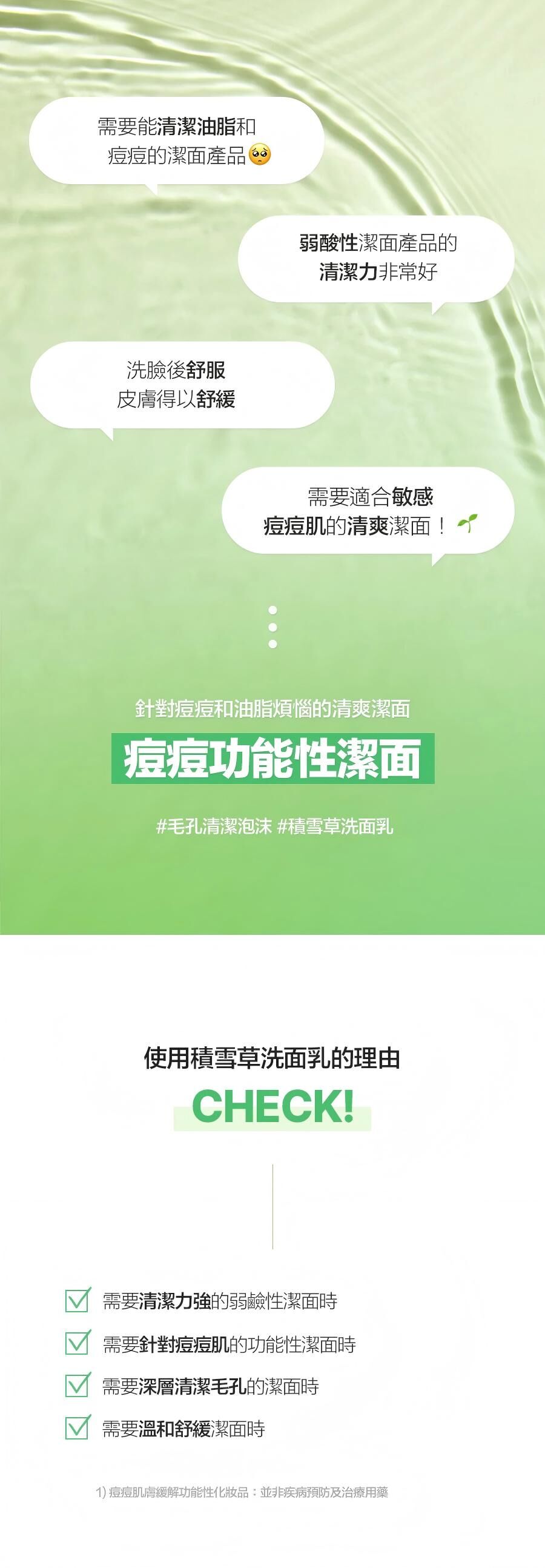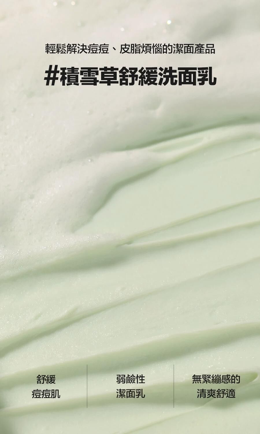積雪草舒緩洗面乳含有 5種 積雪草萃取物。