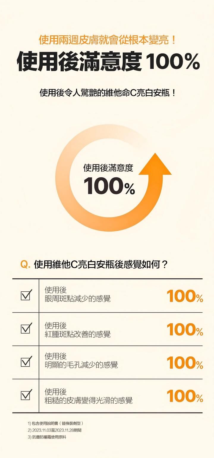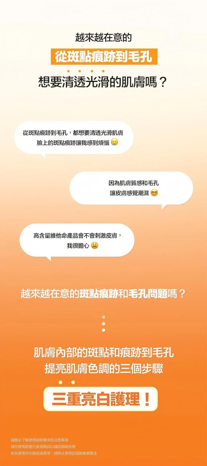100%滿意度--美白去瑕疵(雀斑、色素沉澱、痘印)/平滑紋理毛孔/改善暗沉/泛紅
