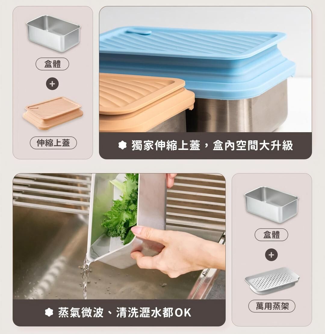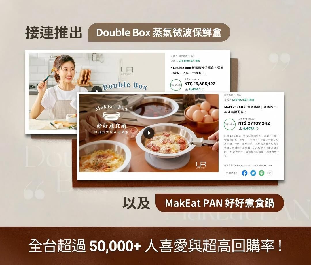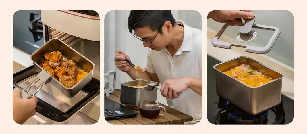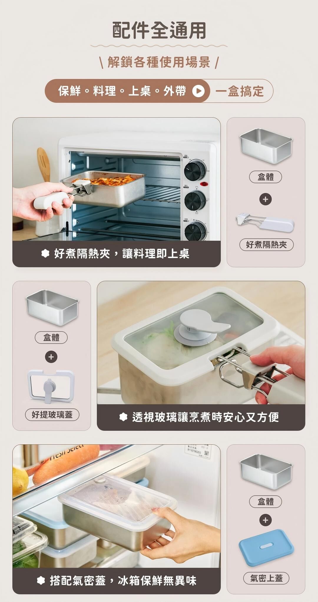 LiFE RiCH 富川創造全新力作!延續「可微波不鏽鋼」專利結構,結合獨家「模組化通用配件」,並新增好煮隔熱夾、好提玻璃蓋、萬用鍋鏟夾,讓保鮮、料理、上桌,輕而易舉!