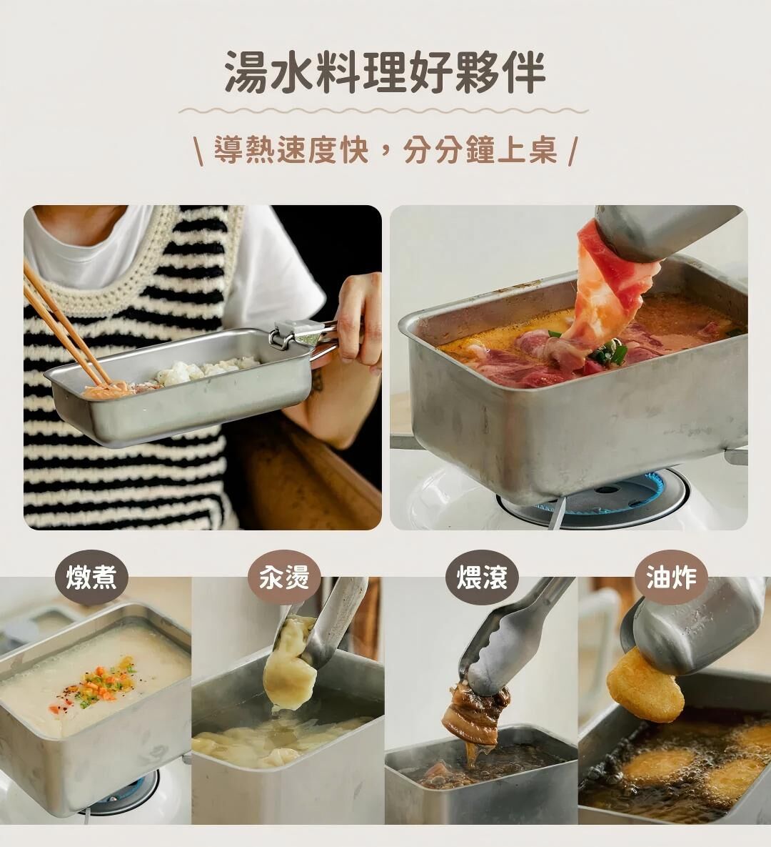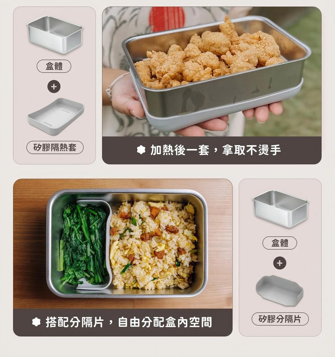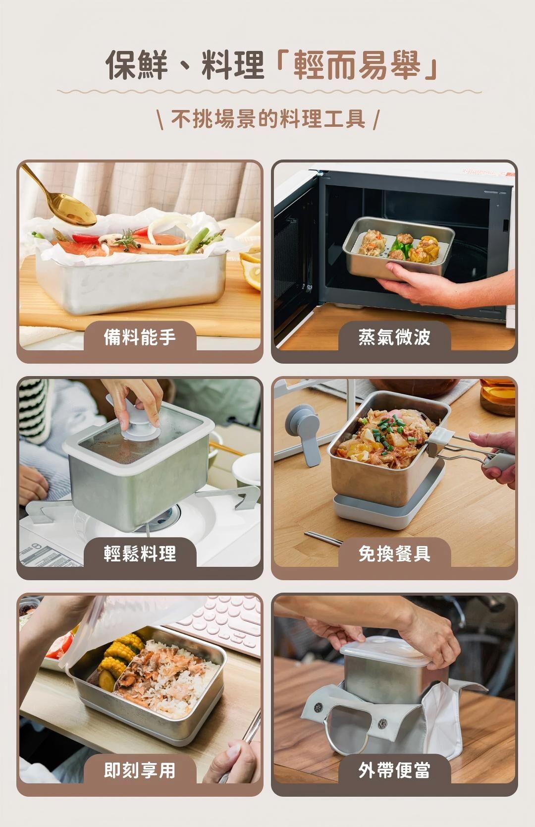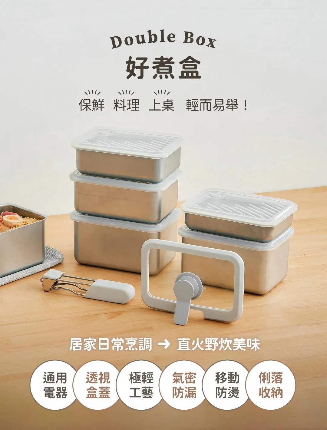 LiFE RiCH 富川創造全新力作!延續「可微波不鏽鋼」專利結構,結合獨家「模組化通用配件」,並新增好煮隔熱夾、好提玻璃蓋、萬用鍋鏟夾,讓保鮮、料理、上桌,輕而易舉!